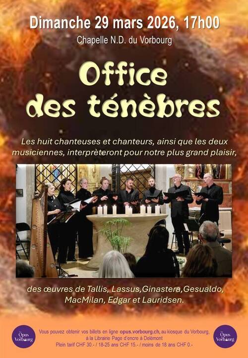 Les billets sont en vente sur le site opusduvorbourg.ch, au kiosque de la chapelle du Vorbourg à la librairie Page d'encre..