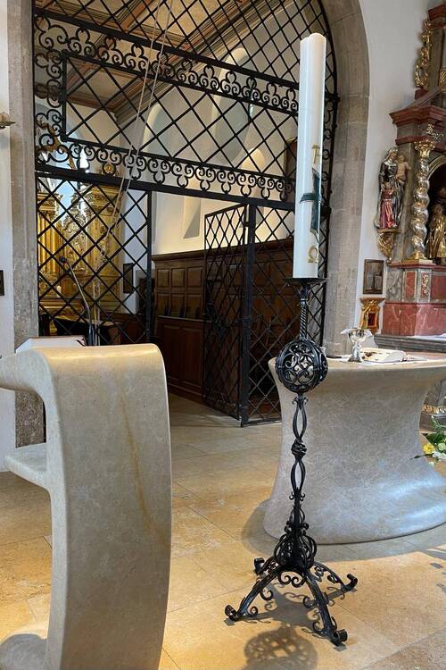 Grâce au talent, à la créativité et au travail d’orfèvre de l’ajoulot Marc Grélat, la chapelle du Vorbourg dispose depuis Pâques d’un magnifique chandelier, véritable œuvre d’art.